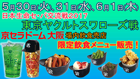 5月30日(火)~6月1日(木)日本生命セ・パ交流戦2017対東京ヤクルトスワローズ戦にて、明治神宮野球場で人気の「山田哲人ハイボール」や、東京ヤクルトスワローズヘルメットグルメ各種を、京セラドーム大阪場内飲食売店等で販売いたします!