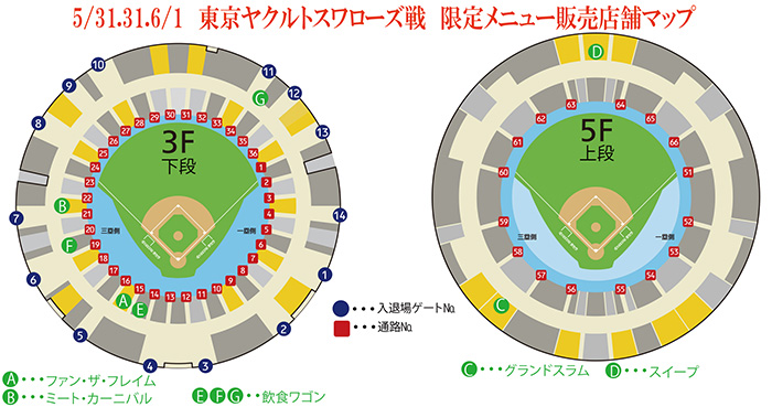| 販売場所 店舗名 | 場内3階(下段) 場内5階(上段) |