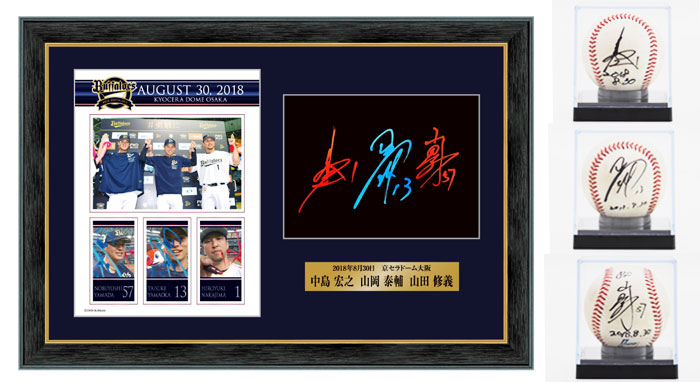 オリックス・バファローズではホームゲーム勝利時、ヒーローとなった選手がプレートにサインをしています。そのプレートを豪華に額装し、さらにヒーロー選手の直筆サインを入れた使用球をセットにして、オークション販売いたします。