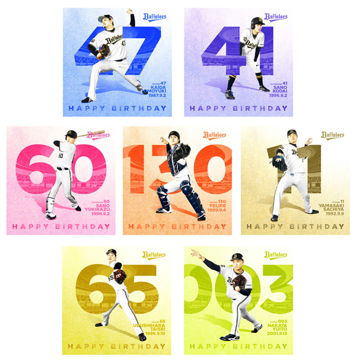 8月後半生まれ7選手、9月前半生まれ7選手のグッズをオンラインショップ限定で受注販売いたします。球団公式SNSで選手の誕生日にアップされるクールな選手バースデーグラフィックがデザイン! 7月2日(金)から5日(月)までの期間限定、お見逃しなく!
