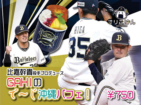 | 商品紹介 | 『GAHIので~じ沖縄パフェ!』 比嘉投手の出身地「沖縄」をイメージしたパフェです。サーターアンダギー、パイナップルを投入し、ドラゴンフルーツソースをトロリとかけて仕上げました!一口食べれば、で~じ(とっても)南国感を味わえます♪ |