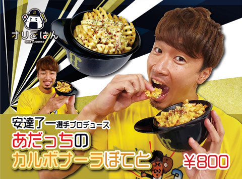 | 商品紹介 | 『あだっちのカルボナーラぽてと』 あみあみポテトにとろーり濃厚カルボナーラソースとパルメザンチーズをトッピング!お子様から大人まで楽しめるリッチなポテトフライです♪ |