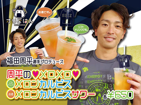 | 商品紹介 | 『周平の♡メロメロ♡メロンカルピス』 『周平の♡メロメロ♡メロンカルピスサワー』 ※アルコール飲料 メロンの爽やかな香りとカルピスの甘味が最高にマッチ! 福田選手の好物、メロンは2種の果実を贅沢に投入しました。見た目も可愛い贅沢なドリンクをお楽しみください♪ |