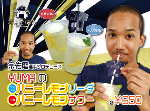 | 商品紹介 | 『YUMAのハニーレモンソーダ』 『YUMAのハニーレモンサワー』 ※アルコール飲料 レモンシャーベットをトッピングしたほんのりハチミツ香る甘酸っぱいドリンク!すっきり爽やかな味わいをお楽しみください♪ |