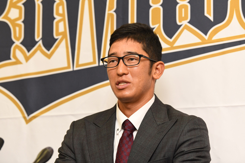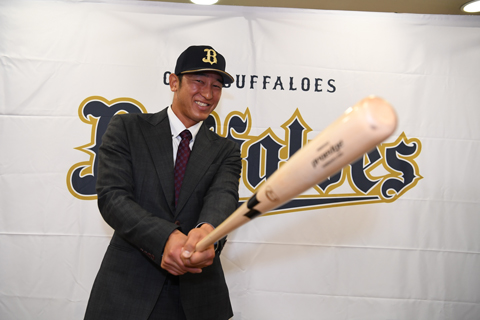 「突然のことでしたので、ビックリしたんですけど、地元が神戸なので関西に戻れるということは嬉しいなと感じました。オリックスは明るい雰囲気というイメージを持っています。また、昨年パ・リーグで優勝していますし、強いチームに来ることができてよかったなとも思っています。自分は、打撃と盗塁に自信を持っていますので、そういった部分でチームに貢献したいと思います。身体が大きいので長打、ホームランと言われがちですが、僕自身はボールに当てる技術に自信を持っていますので、そこをもっと高めていきたいですね。