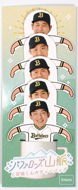 4月4日(火)より大好評の「オリチュウ」と、バファローズ山脈と呼ばれる山崎福・山本・山岡・山崎颯の4投手と宮城投手のティーバッグ「バファローズ山脈と宮城くんのティーバッグ」を発売します。