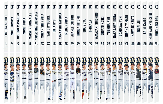 | 種類 | 26種(福田・森・西野・宗・ゴンザレス・山下・村西・齋藤・太田・山足・池田・コットン・本田・小田・T-岡田・山崎颯・大里・吉田・中川圭・宇田川・平野大・川瀬・釣・才木・村上・椋木) |