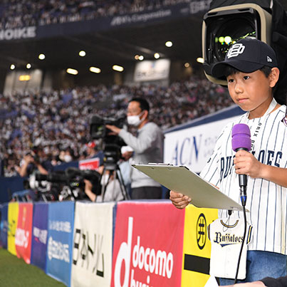 | 募集人数 | 各日1名様/抽選 ★中学生以下のオリっこ限定 ※ご当選された方は、必ずバファローズユニフォームやバファローズTシャツを着用の上、ご参加ください。(種類は問いません) ※参加するには「当日の試合観戦チケット」が必要です。 ※ご当選されたご本人のみ参加可能です。ご家族・ご友人の同伴はできません。 |