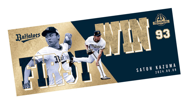 本日6月9日(日)読売ジャイアンツ戦にて、見事プロ初勝利を記録した佐藤一磨投手の記念グッズをオンラインショップにて6月10日(月)17:00より先行販売!球団直営店「Bs SHOP」・「B-WAVE」では7月上旬より発売します。