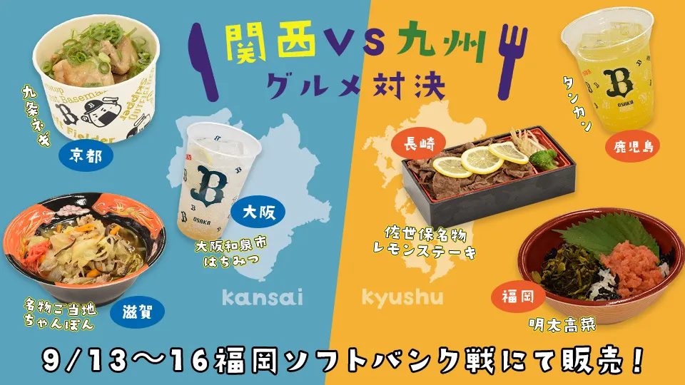 グルメ2024/09/10 (火)「関西vs九州 グルメ対決」9/13~16福岡ソフトバンク戦にて販売!