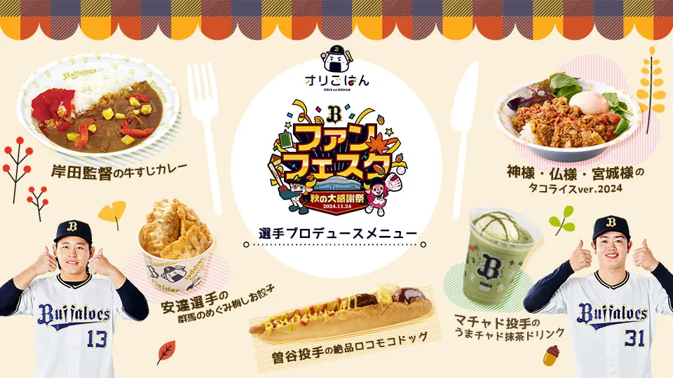グルメ イベント2024/11/18 (月)Bs Fan-Festa2024オリごはん「岸田監督プロデュースメニュー」「選手プロデュースメニュー」販売!! -