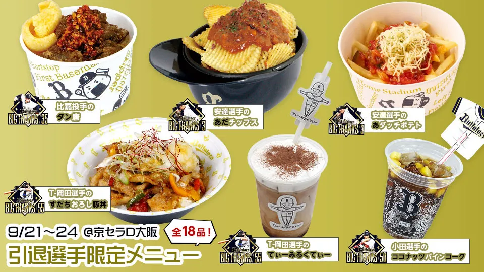 グルメ2024/09/19 (木)9/21~24にて「引退選手限定メニュー」を販売! -