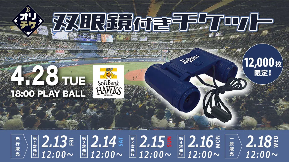 チケット2026/01/23 (金)4/28(火)福岡ソフトバンク戦にて双眼鏡付きチケットを販売!