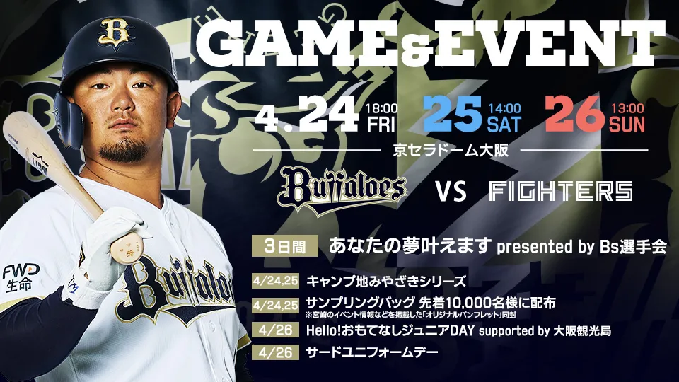 イベント2026/04/23 (木)4/24~4/26 北海道日本ハムファイターズ戦 試合&イベント情報