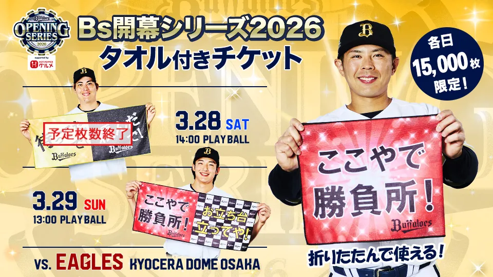 チケット2025/03/08 (土)3・4月公式戦の券売・開門時間(オリックス主催ゲーム) -