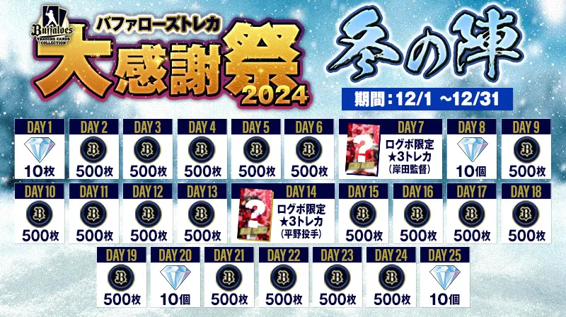 バファローズトレカ2024/12/22 (日)【バファローズトレカ】12月のメルマガ限定トレカ配布決定! -
