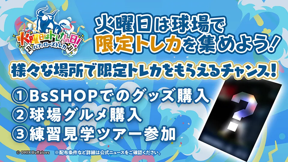 チケット イベント グッズ グルメ バファローズトレカ2026/04/03 (金) NEW!【火曜日はトレカの日!】火曜日は球場で限定トレカを集めよう! -
