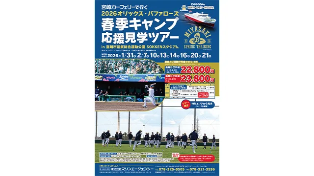 イベント2026/01/13 (火)宮崎カーフェリーで行く! 「 春季キャンプ応援見学ツアー 」 -