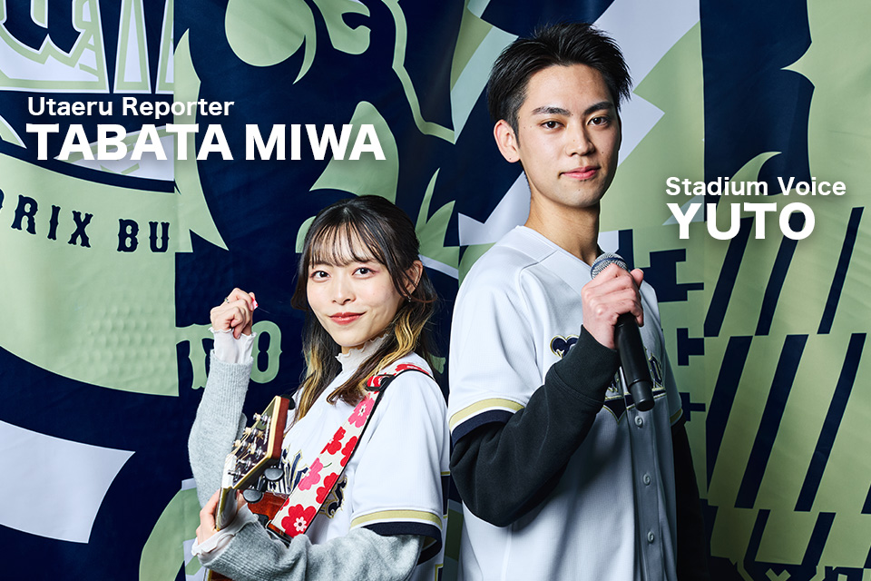 2026シーズンよりアナウンスを担当するスタジアム・ボイスのYUTOさんと、うたえるリポーター、略してうたリポの田畑実和さんが、バファローズ主催試合の球場を“声”で盛り上げます!