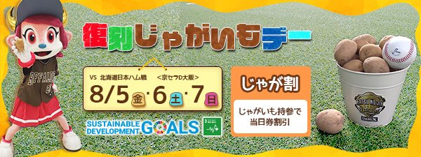 販売窓口(チケット売り場2)でじゃがいもをご提示いただくと、当日券を優待価格でご観戦いただけます!