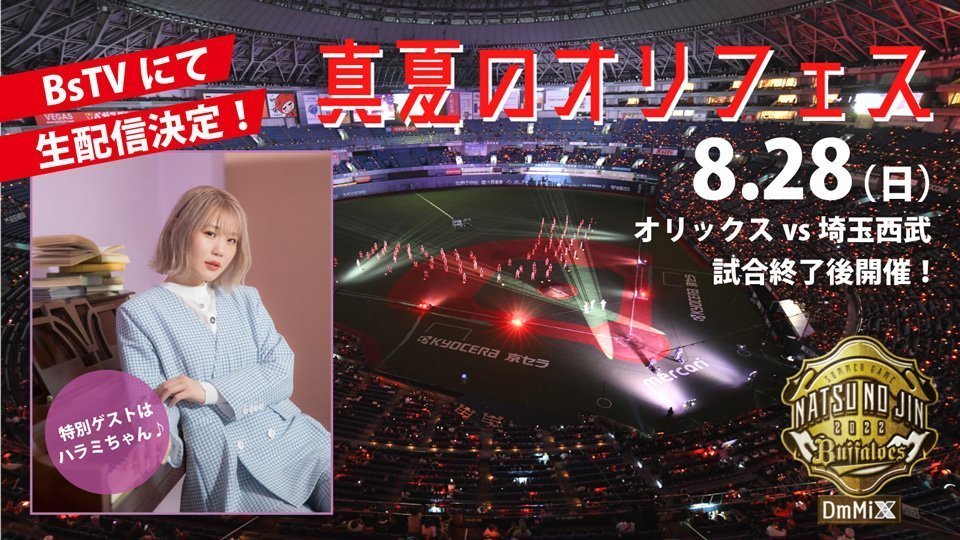◆試合終了後イベント「真夏のオリフェス」開催!ハラミちゃん出演!YouTubeでも生配信します!