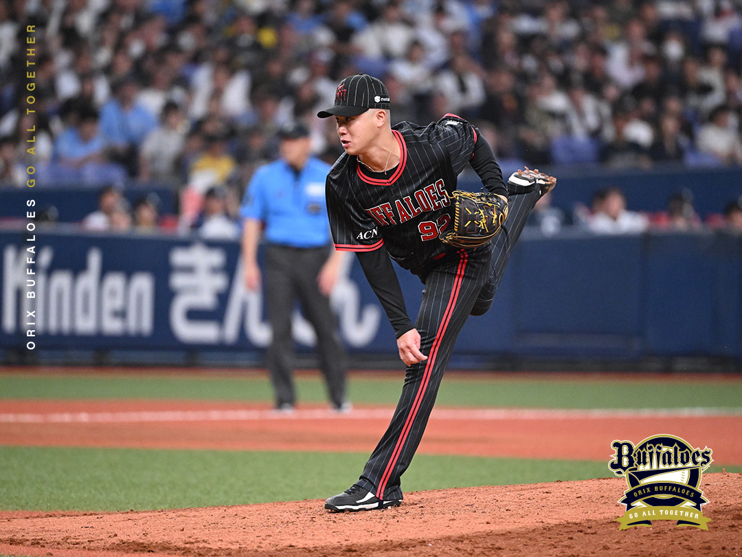 7回から継投に入ったバファローズは、才木、山岡、岩嵜がそれぞれ1回ずつを投げノーヒットに抑える安定感を見せ味方の援護を待つも、打線は最後まで得点を奪うことができずに試合終了。