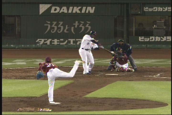 投手 岩隈 9番 日高 左飛 低めのストレートを上手く捉えたが… |