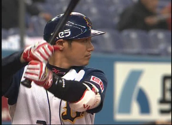 5番 カブレラ 空三振 外角のストレートにタイミングが合わず |