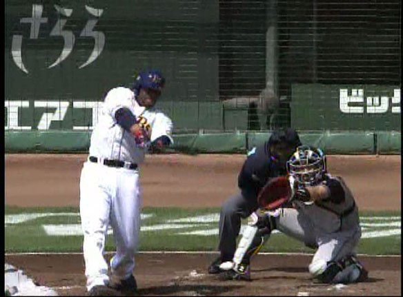 投手 グリン 7番 濱中 空三振 外角低めに落ちる変化球にバットが届かず |