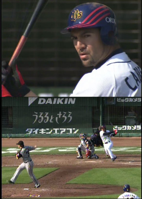 7番 濱中 二ゴ セカンドゴロの間に3塁ランナーローズが本塁生還して1点を返した! オ2-3日 ![]() 2