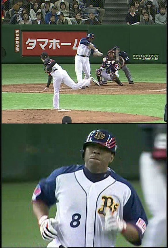 1番 坂口 右翼二 大きく跳ねた打球はファーストのオーティズの頭上を抜けた!本日3本目はタイムリーヒットに! オ9-3ロ ![]() 9