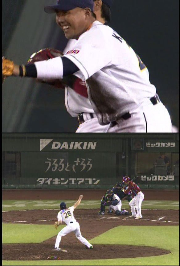 投手 小松 投手 ヤング 投手交代/小松⇒ヤング 守備変更 ライト/ローズ⇒迎 |