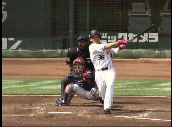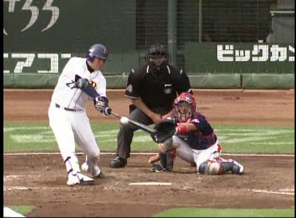 4番 畠山 見三振 2-2から内角へ得意の変化球が決まった! |