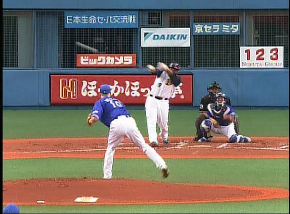 4番 ローズ 二併 一二塁間への打球はセカンド仁志に追いつかれてしまい、4-6-3のダブルプレー… |