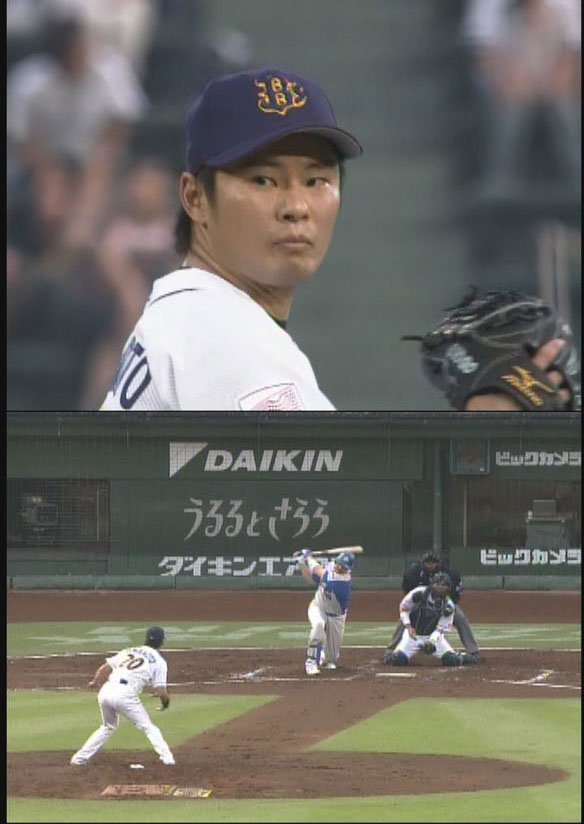 投手 山本 1番 片岡 中安 ピッチャー返しの当たりに山本がグラブを出したが… |