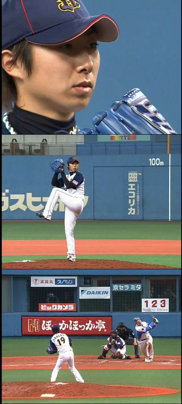 投手 金子 投手 加藤 投手交代/金子⇒加藤 守備変更 サード/北川⇒阿部 |