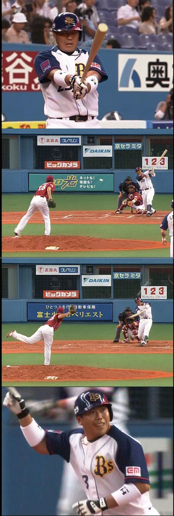 1番 鉄平 右安 変化球をしっかりと待って打ち返されてしまった… オ3-1楽 ![]() 3