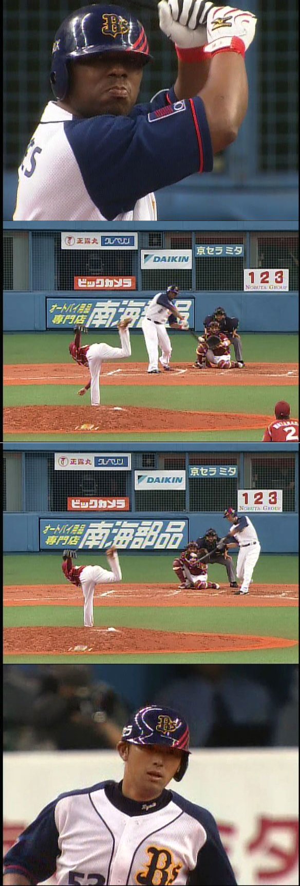 投手 本柳 投手 吉野 投手交代/本柳⇒吉野 守備変更 ファースト/カブレラ⇒北川 サード/北川⇒一輝 |