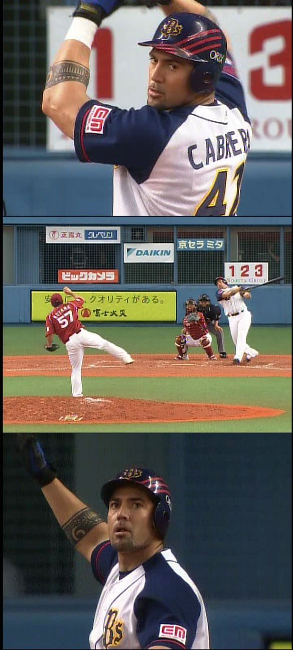 3番 カブレラ 四球 フルカウントからインコースへの真直ぐに辛うじてバットを止めた! |