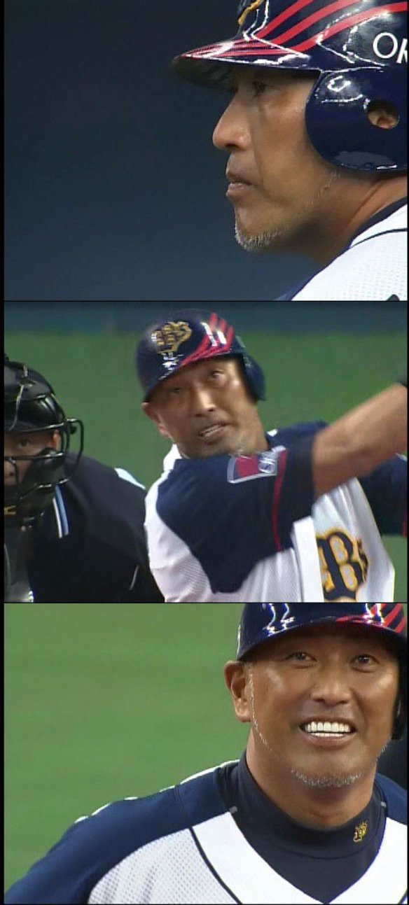 4番 サブロー 左中二 バットを圧し折るも、引っ張られた当たりは左中間を抜けた… オ2-8ロ ![]() 2