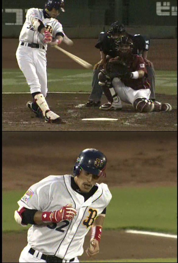 4番 セギノール 三飛 初球の変化球を高々と打ち上げた!打球は少し風に流されるも、北川がしっかりとキャッチ! |