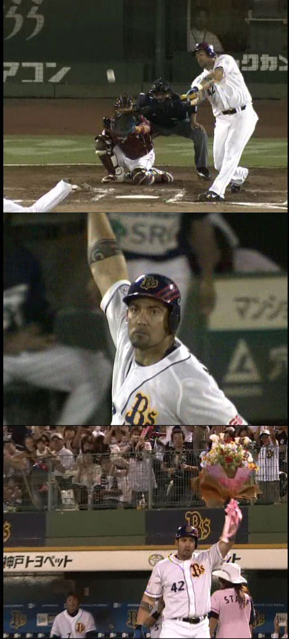 4番 セギノール 右安 外角高めに浮いてしまった直球を右中間方向に弾き返された… オ4-3楽 ![]() 4
