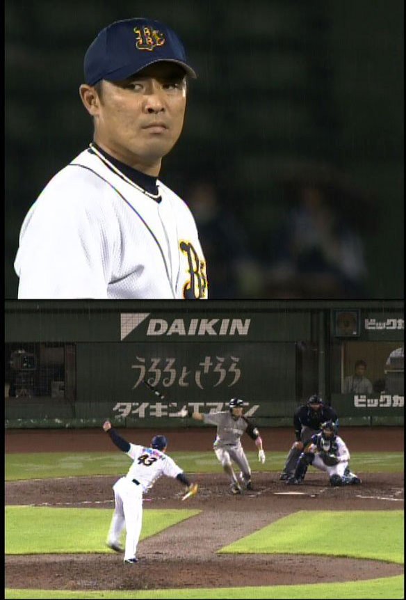 投手 岸田 9番 金子誠 見三振 2-0からアウトコースへの142km/hのストレートを見逃した! |
