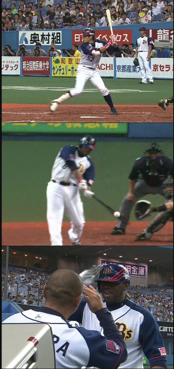 タイムリー2ベースを放った坂口選手・32号2ランを放ったローズ選手