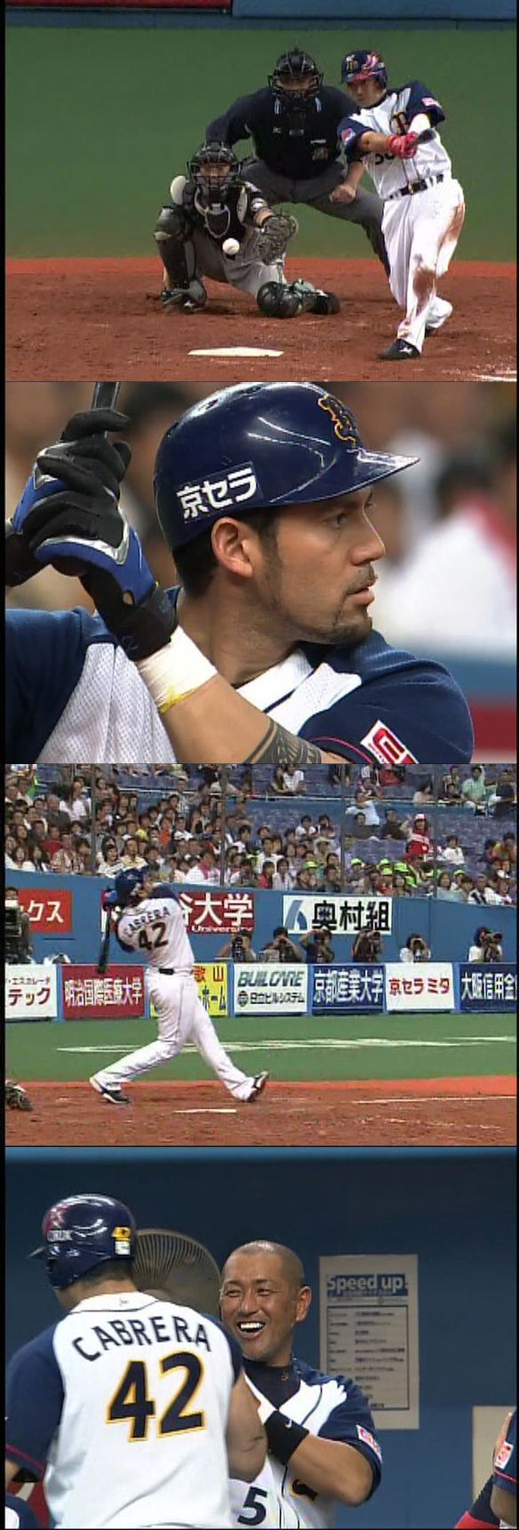 3番 カブレラ 左中本 外角高めの失投を振り抜いた!打球は高い弾道でそのまま左中間スタンドへ! 今シーズン31号は3戦連発となる会心の3ランホームラ~ン!! バファローズ、この回一気に逆転!! オ4-1日 ![]() 4