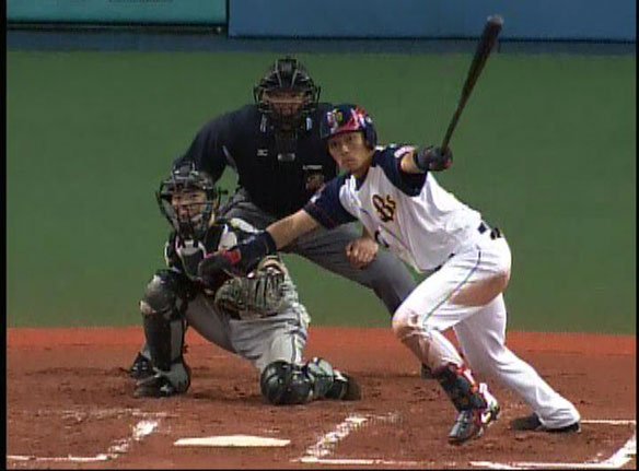 6番 スレッジ 左安 147km/hのストレートを上手く合わされ左中間へのシングルヒット |
