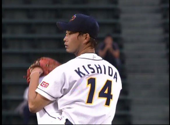 投手 岸田 8番 細川 空三振 フルカウントから真ん中高めの変化球で空振りを奪った! |