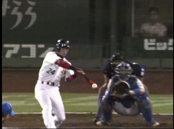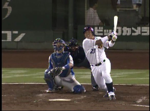 投手 帆足 6番 濱中 右中二 真ん中高めのストレートを捉えた打球は右中間を真っ二つに破る2ベースヒット! |