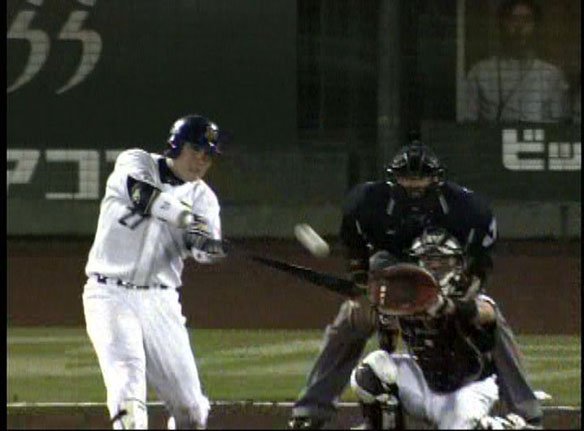 投手 近藤 4番 松中 見三振 ボール球を1つ見せ、そこから外角低めのストレートを3つ続けて見逃し三振! |