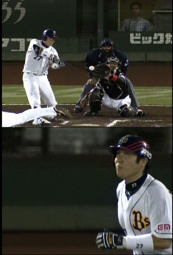 3番 多村 中飛 真ん中外よりの131km/hの変化球に当てただけの平凡なセンターフライ! 3者凡退!! |